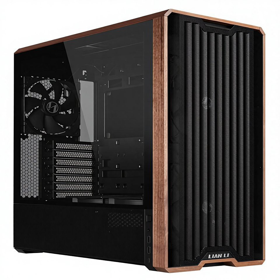 Boîtier PC ATX Lian Li LANCOOL 217 en bois de noyer véritable, tour moyenne, 5 ventilateurs PWM préinstallés, 2x170mm, 2x120mm, 1x140mm, alimentation flexible