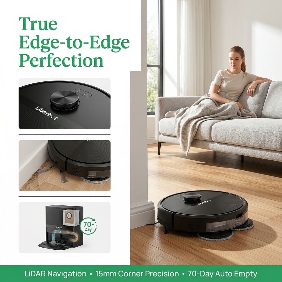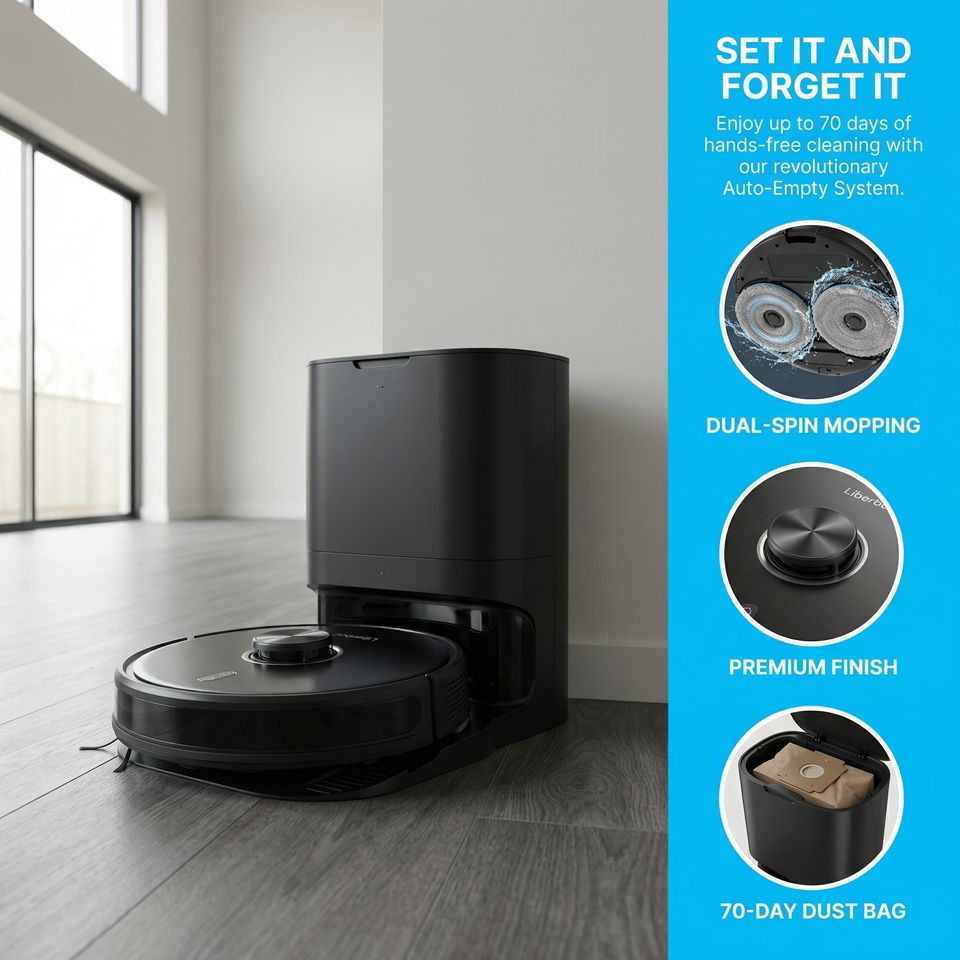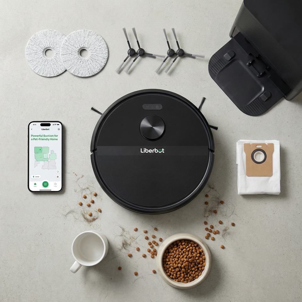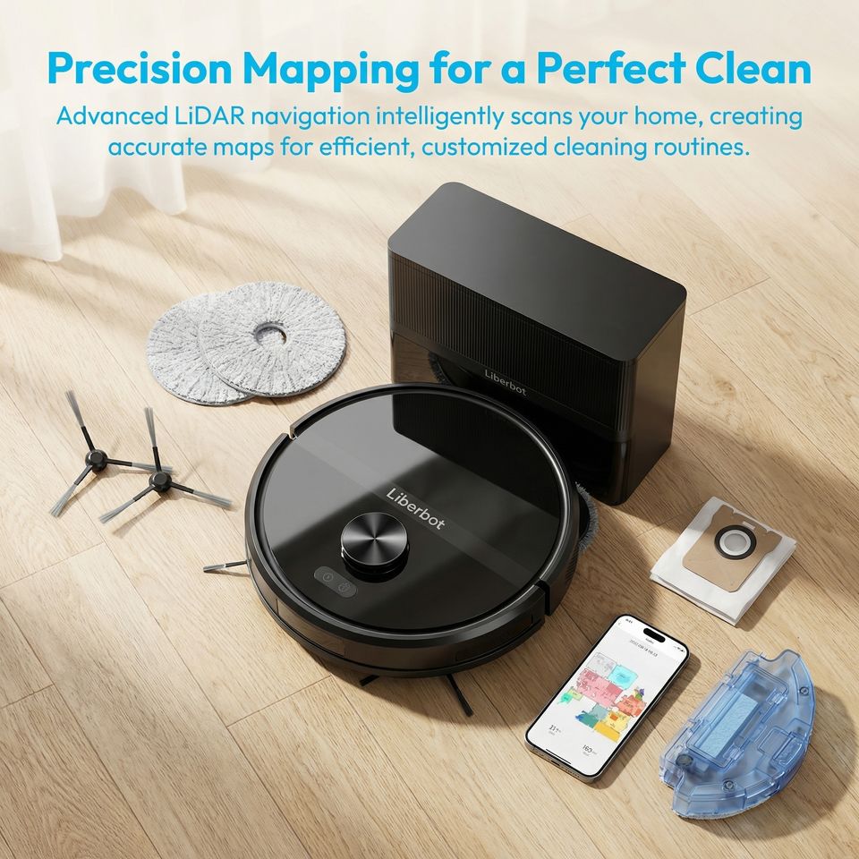 Liberbot Aspirateur robot intelligent sans fil, contrôle par application, vidage automatique des débris, robot de balayage et de lavage