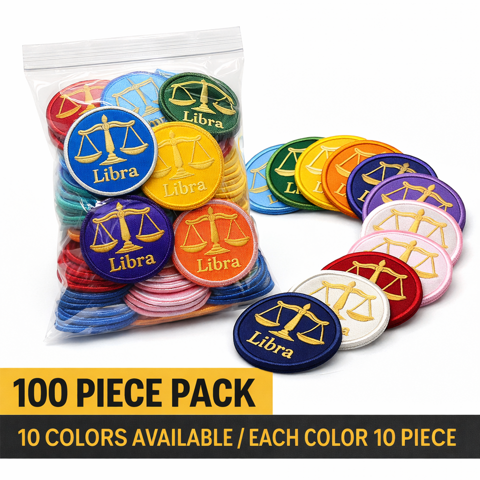 Patch brodé Zodiaque Libra – Pack de 100 pièces, 10 couleurs, à thermocoller/à coudre, motif astrologique (2,5 pouces chacun)