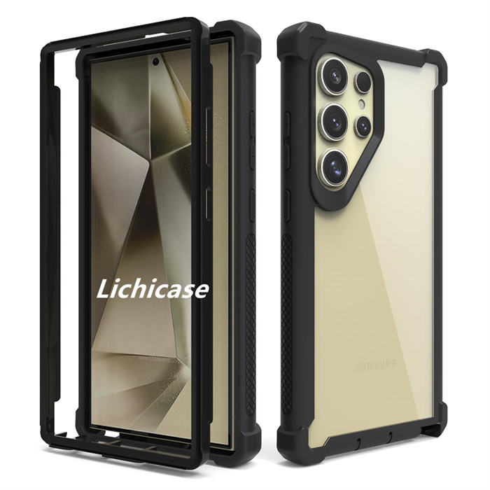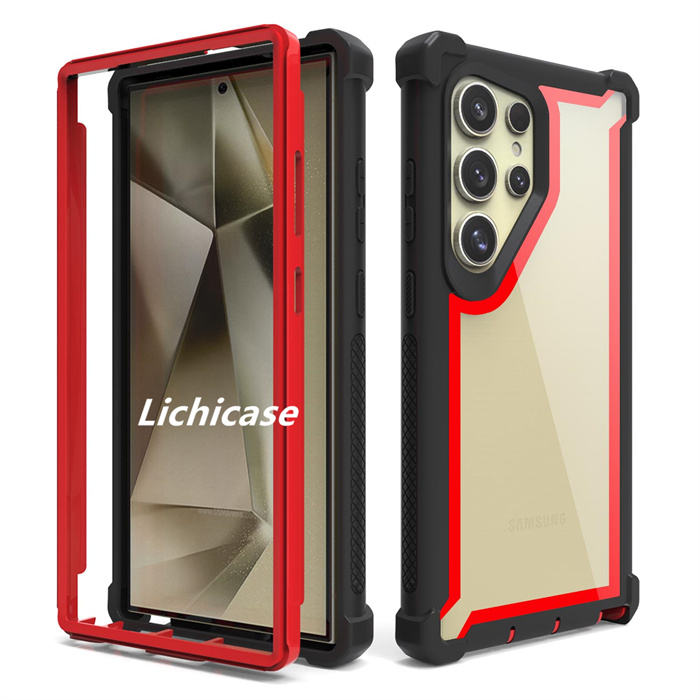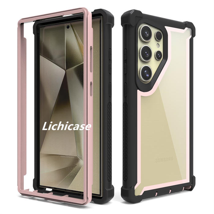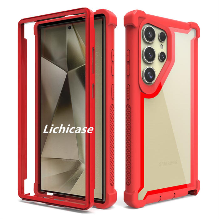 Coque de pare-chocs robuste à double couche Lichicase Color Border pour Samsung S24 Coque ultra transparente pour téléphone