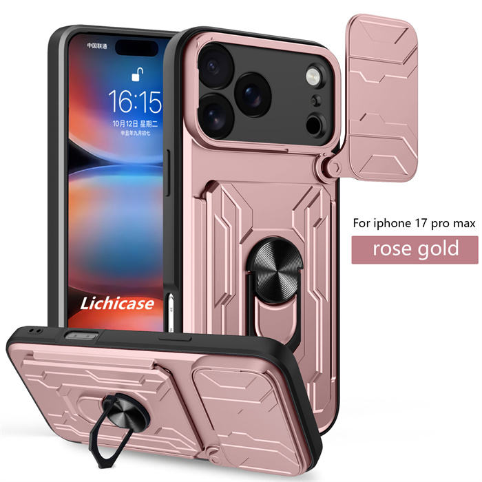 Nom du produit:Étui de téléphone antichoc avec protection d'objectif coulissant, anneau métallique et support intégré.
