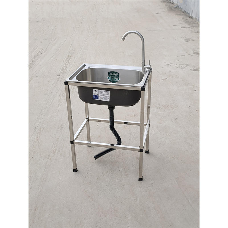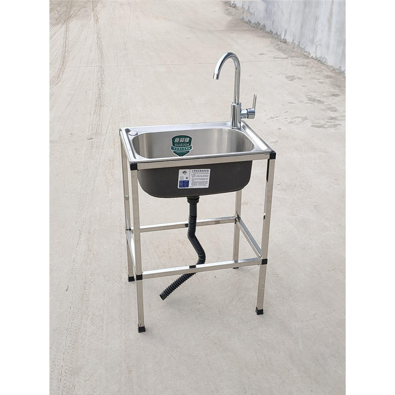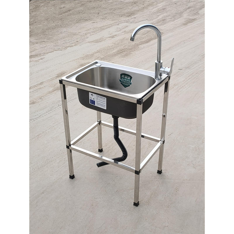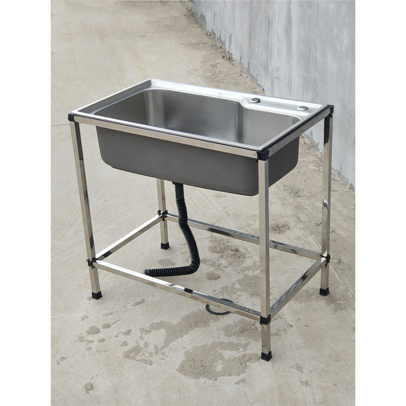 Évier de cuisine Lida en acier inoxydable, simple bac, D35, avec robinet, sur pieds, surface polie