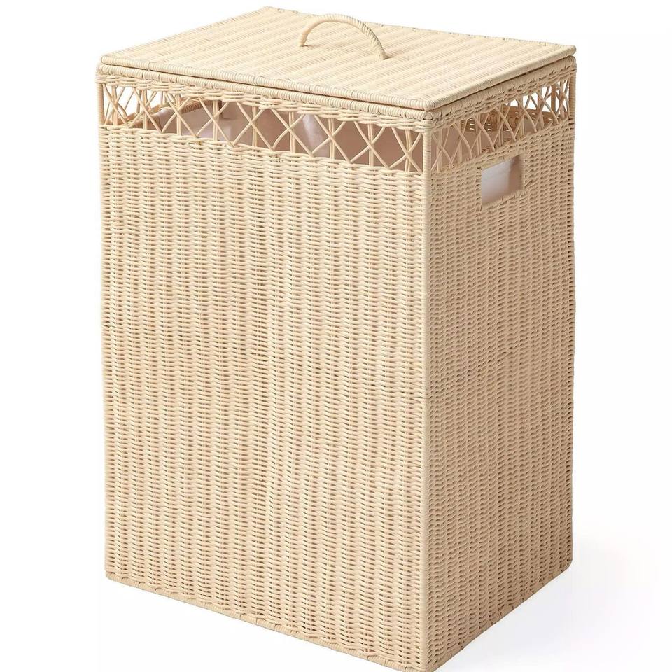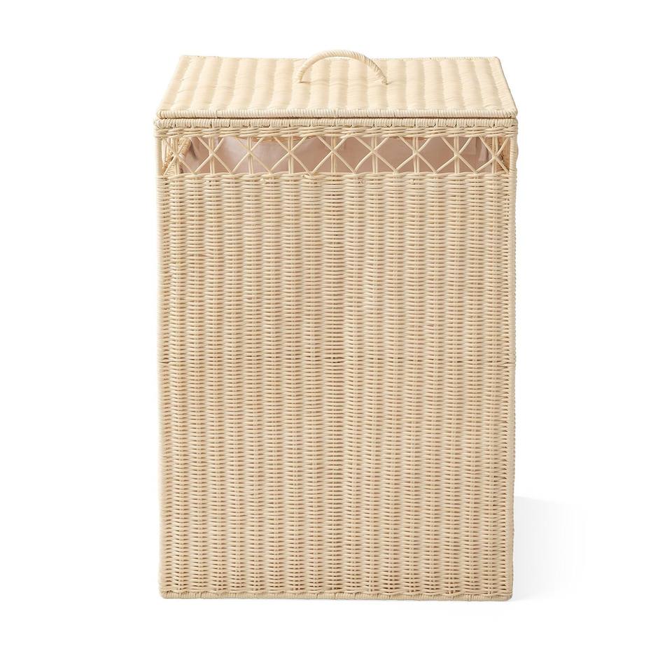 Panier de rangement en rotin avec couvercle, organisateur en osier pour le linge, les couvertures et le rangement domestique, aspect épuré et construction durable