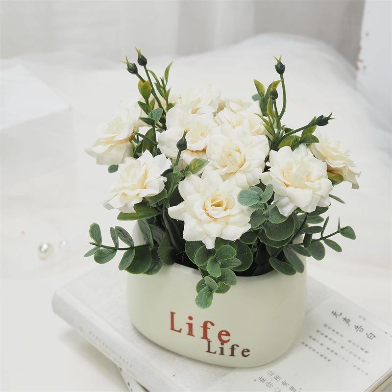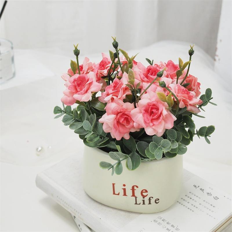 Vie Eucalyptus Petit Rose Pot En Céramique Ensemble En Plastique Simulation Bureau Décoratif Artisanat pour Thanksgiving Tenture Murale De Mariage