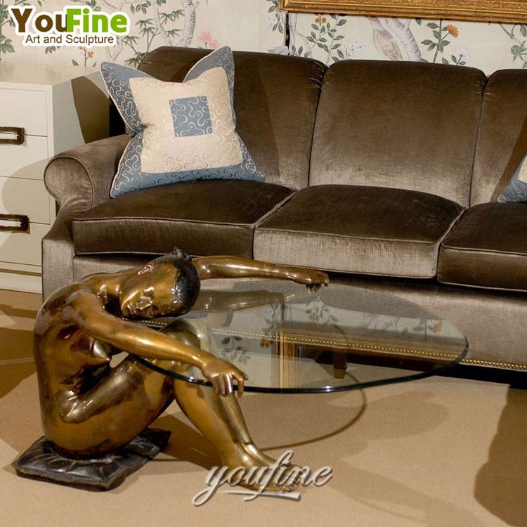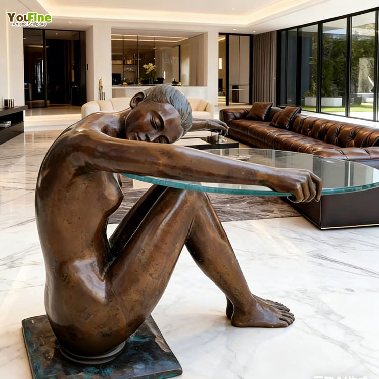 Table basse en bronze coulé grandeur nature représentant une jeune fille