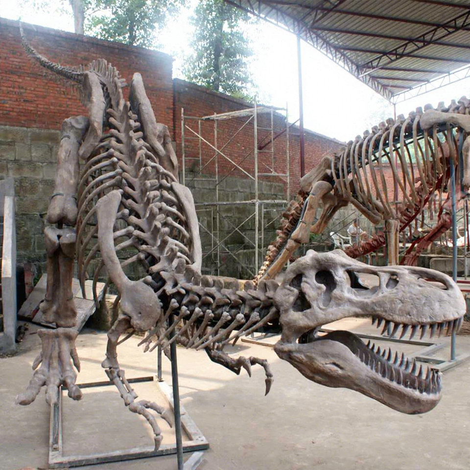 Squelette de dinosaure T-Rex simulé grandeur nature en fibre de verre pour parc à thème, exposition muséale et décoration préhistorique extérieure