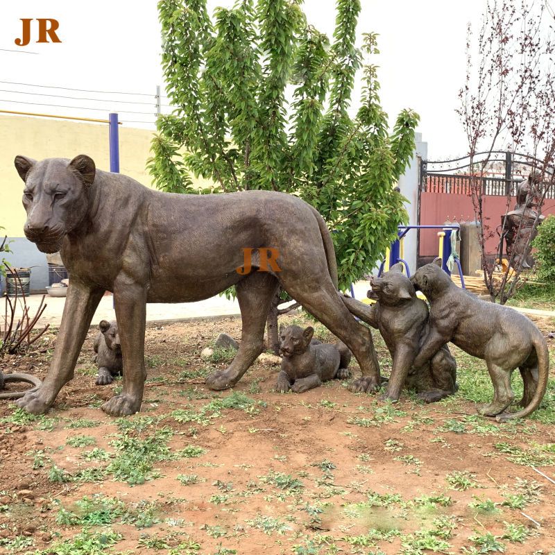Life Size Happy Family Bronze lion Statue Brass Mother Lioness and Little Lions Sculpture