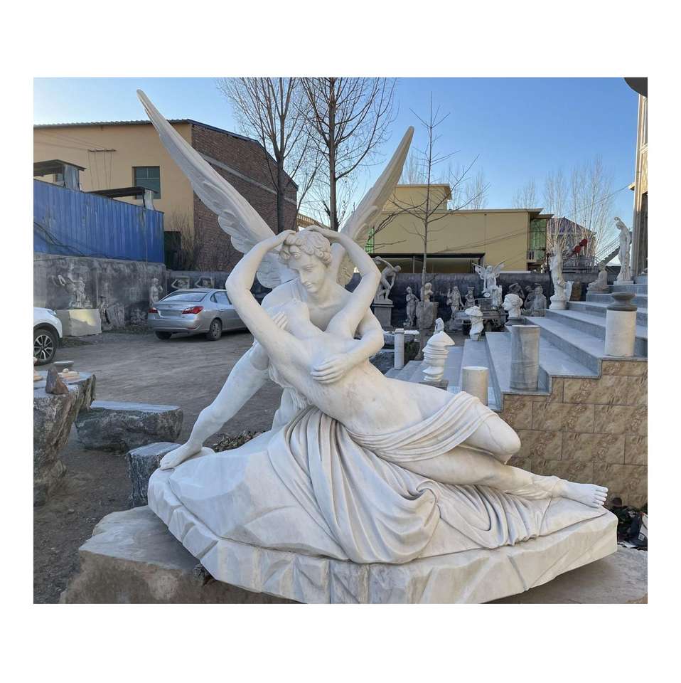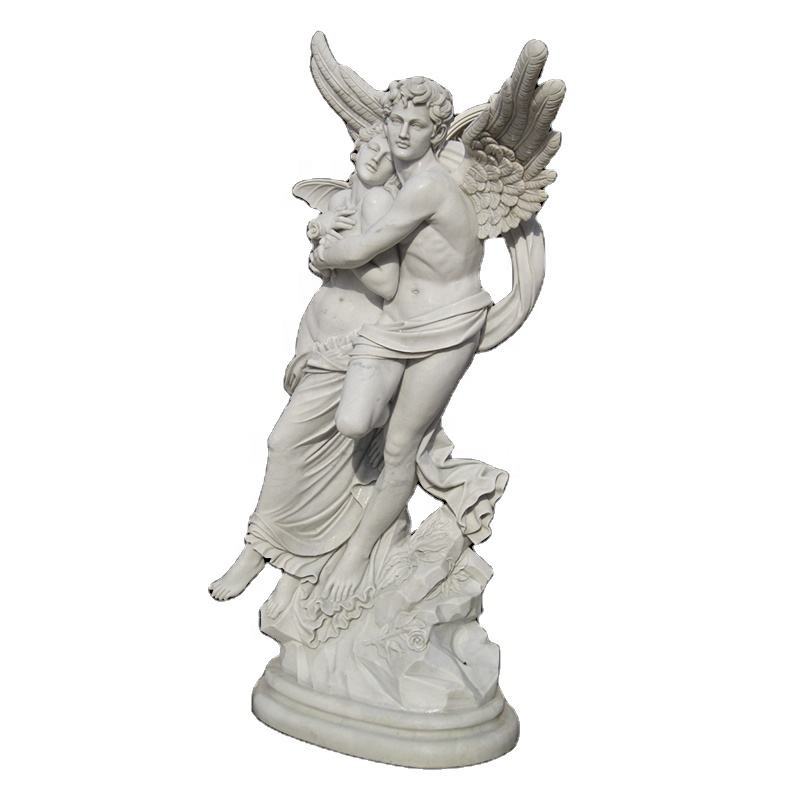 Statue d'ange de psyché et de cupidon célèbre en marbre grandeur nature embrassant