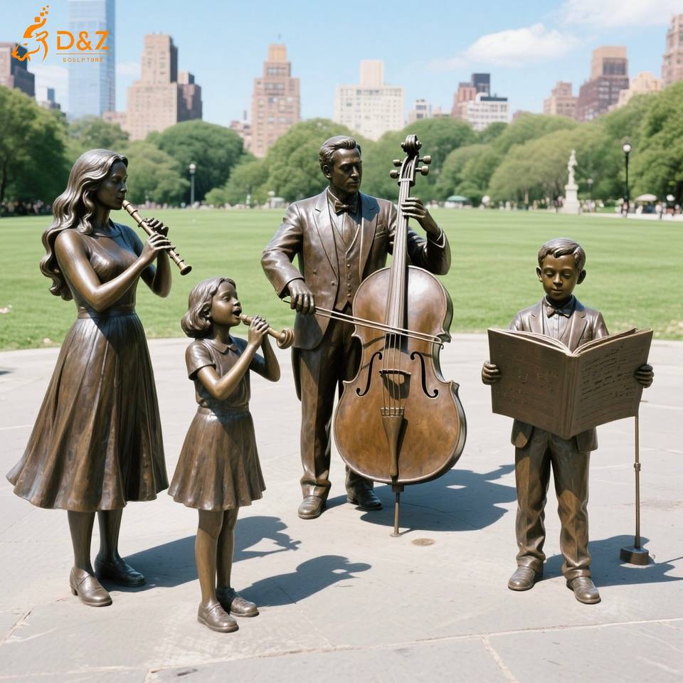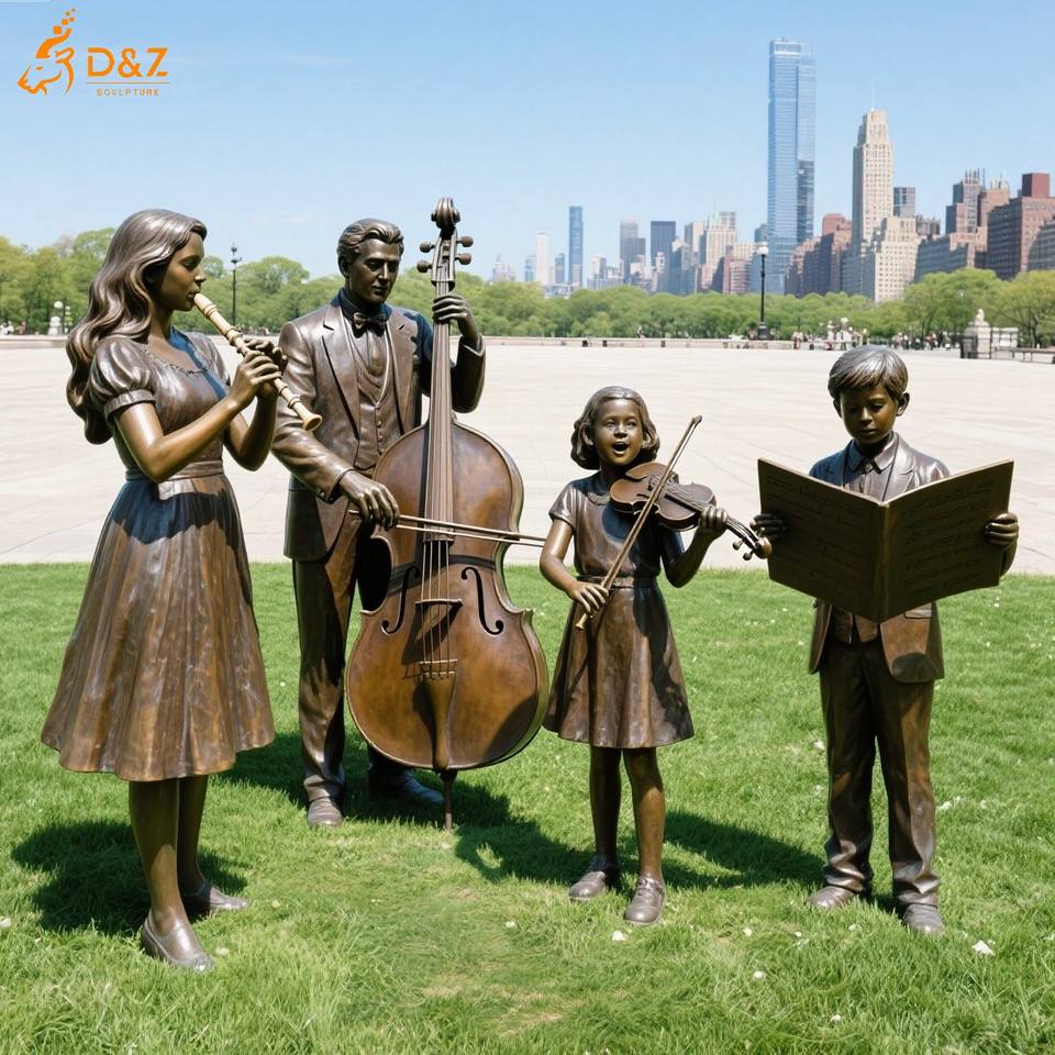 Sculpture publique extérieure grandeur nature de bronze Musicien Family Statues fabriquées à partir de D & Z Foundry