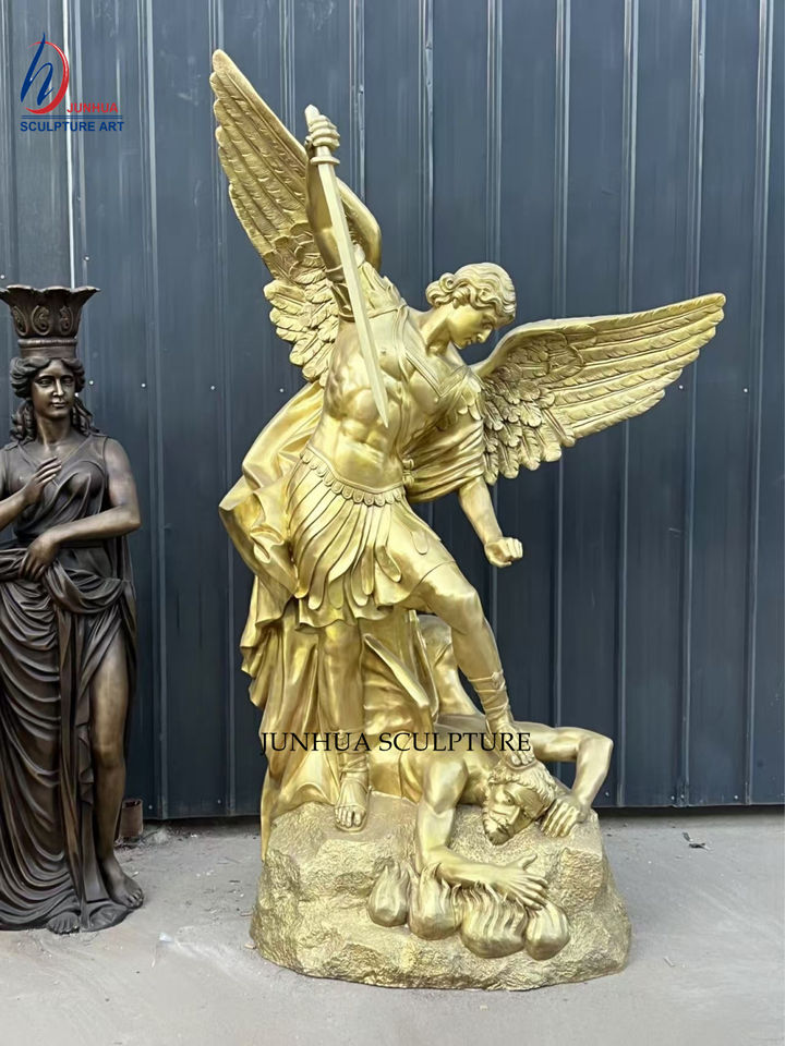 Statue grandeur nature en bronze d'archange religieux Saint Michel tue le diable Sculpture en bronze