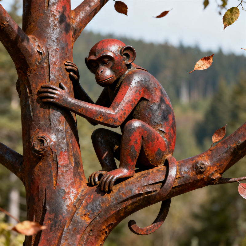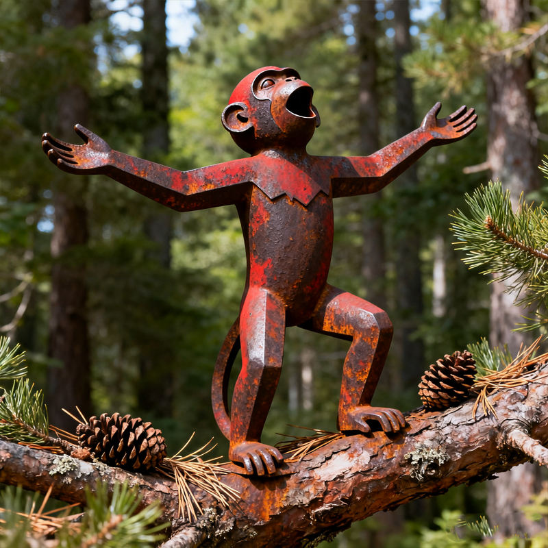 Statue en acier aux intempéries extérieure grandeur nature trois singes modèle coulé à la main pour la fête des pères Halloween décor 5mm mode pyramide