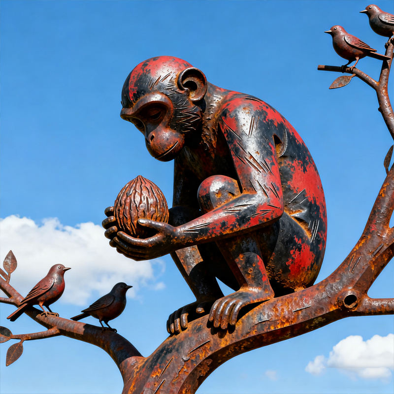 Nom:Une statue en acier patiné grandeur nature représentant trois singes
