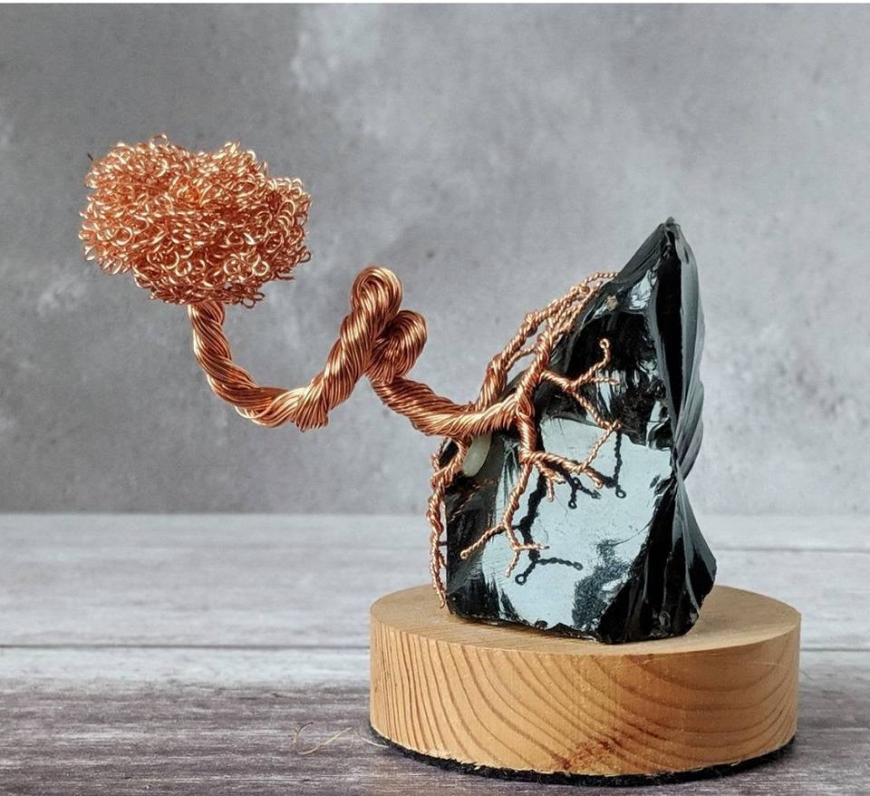 Arbre de vie cuivre bonsaï arbre Style Feng Shui sur Base d'obsidienne sculpté Reiki guérison argent arbre cristal décoration Art cadeaux