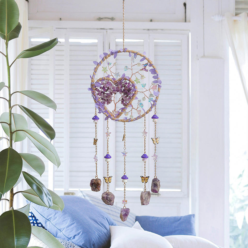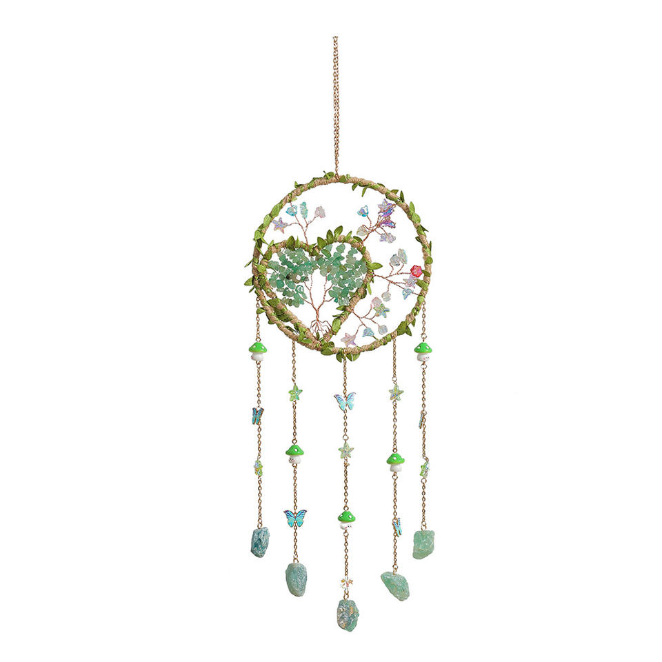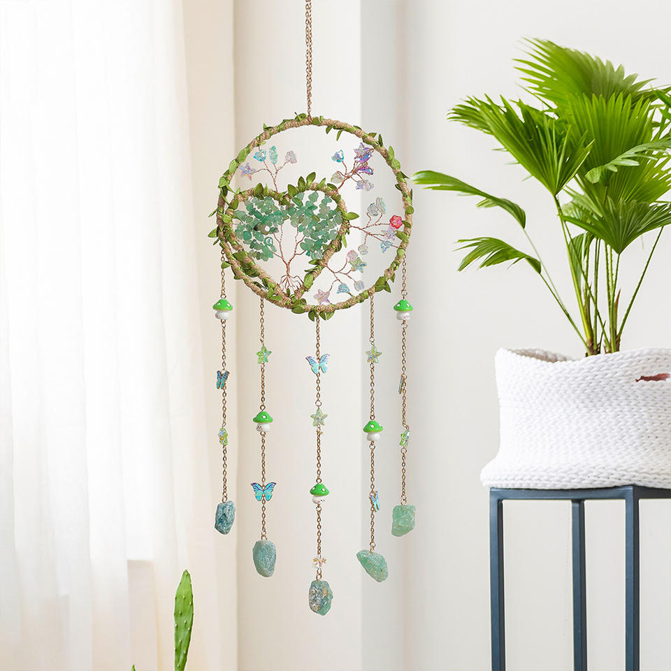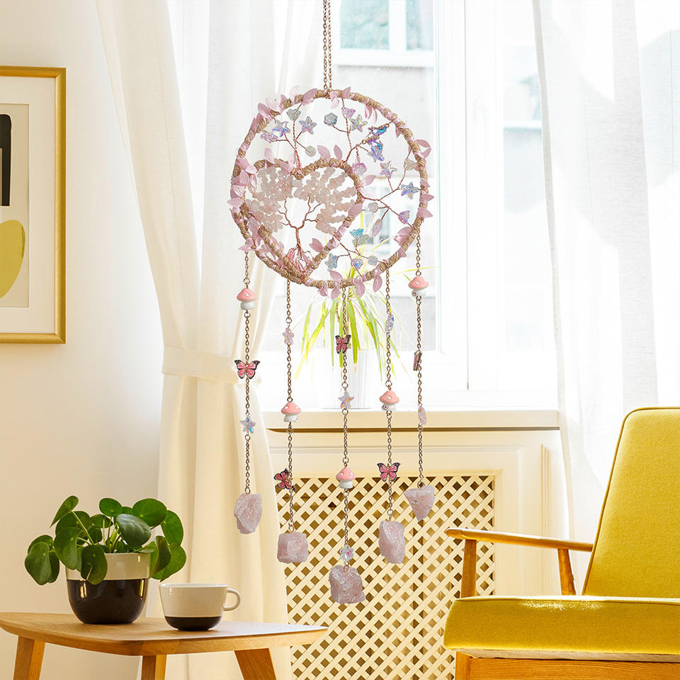 Attrape-rêves Arbre de Vie en pierre de cristal, tissage artisanal, carillon éolien, décoration de chambre d'inspiration nordique