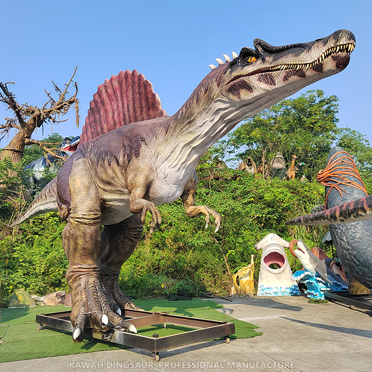 Statue de Spinosaurus réaliste 15 mètres de long dinosaure animatronique Spinosaurus décoration du monde jurassique