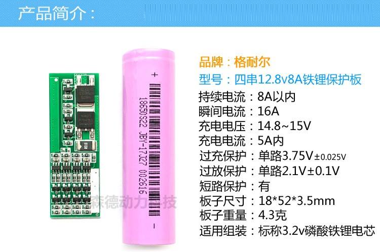 Lifepo4 BMS 4S 12.8V 8A