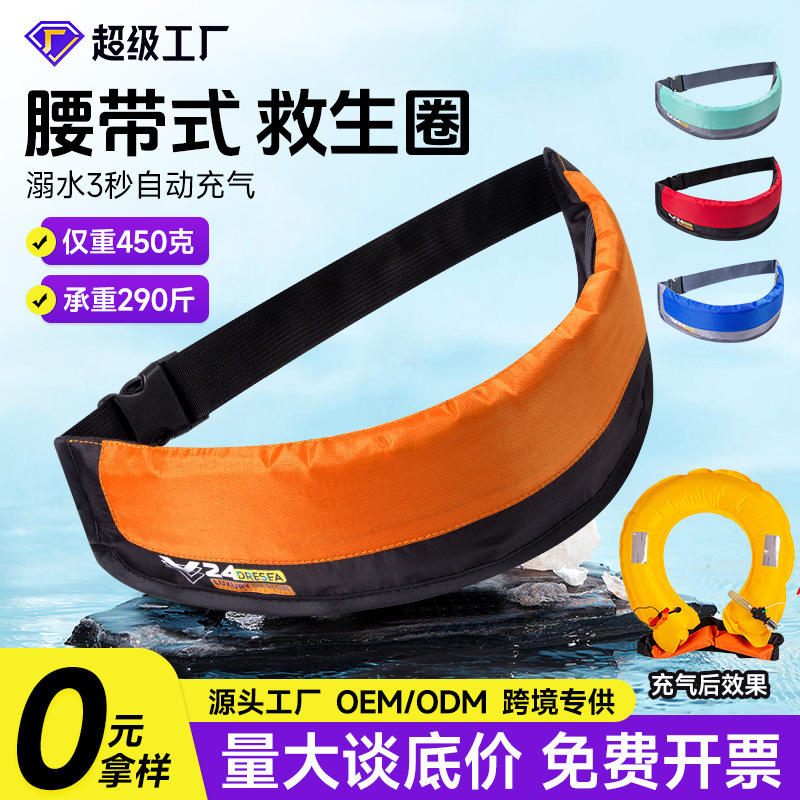 Ceinture de sauvetage portable auto-gonflante à haute flottabilité pour la pêche, combinaison de sauvetage d'urgence pour adulte, anneau de sauvetage, taille réglable, matériau PVC