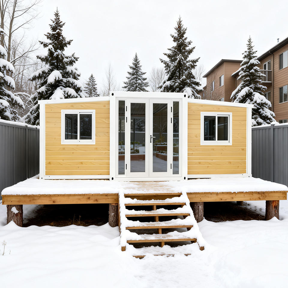 Plans d'assemblage de maisons conteneurs isolées et mobiles en teck préfabriquées pour climats froids