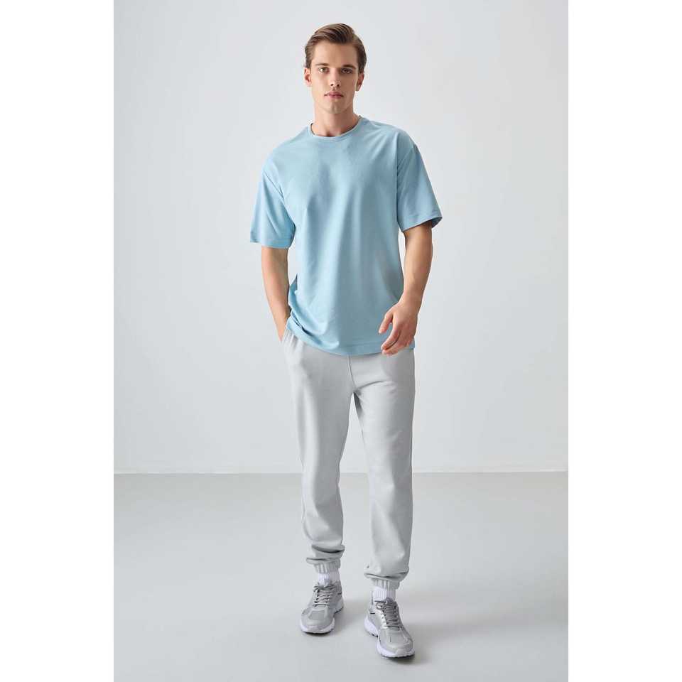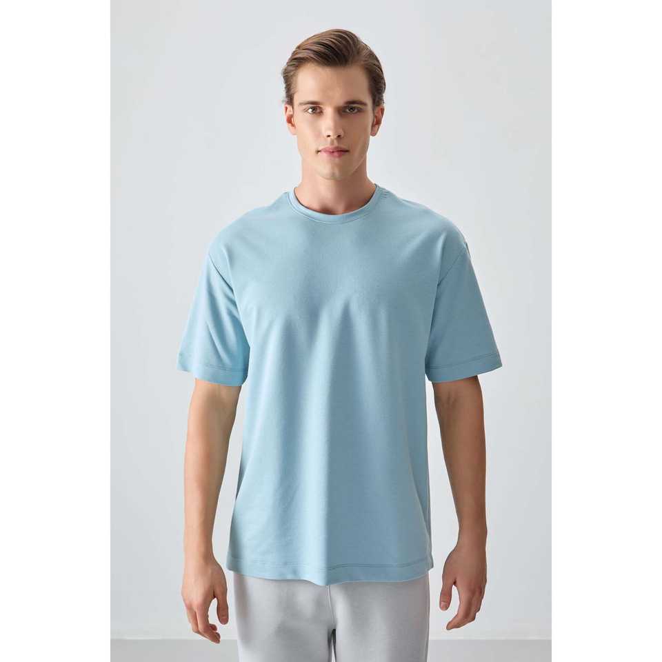 T-shirt basique bleu clair pour homme - 88377 - 100% coton jersey - Épais, doux, texturé - Coupe ample