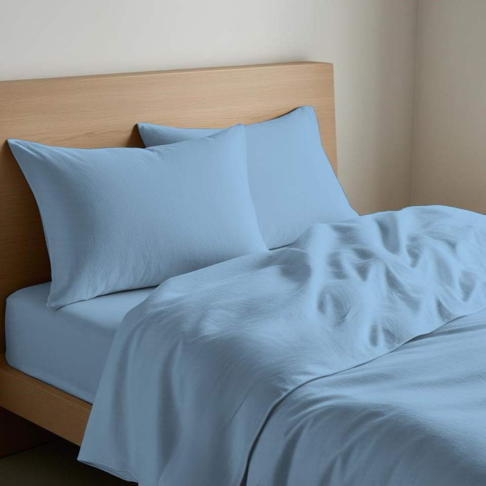 Ensemble de draps en coton bleu clair, taille simple UK, taie d'oreiller incluse
