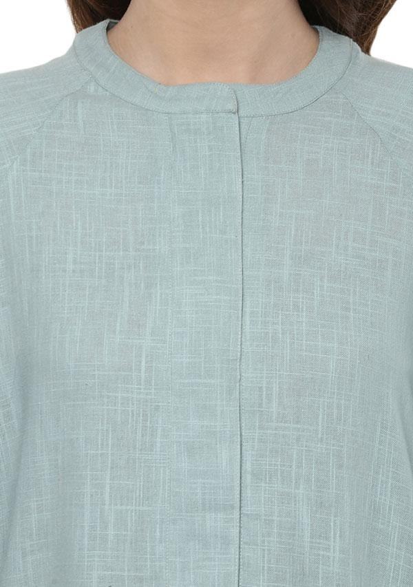 Robe de nuit ample en coton bleu clair pour sommeil confortable relaxant fermeture éclair détail manches longues motif solide taille naturelle tissée