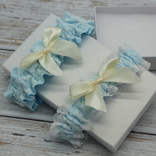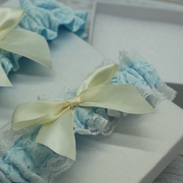 Jarretière de mariage en ruban de satin bleu clair ensemble jarretière de mariée en dentelle ivoire pour la décoration des jambes jarretelles élégantes ceinture