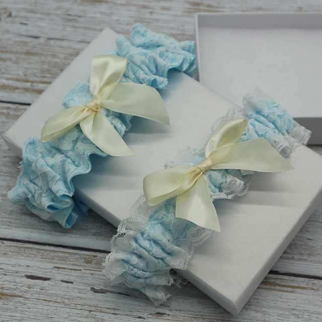 Product name:light blue satin ribbon wedding garter set