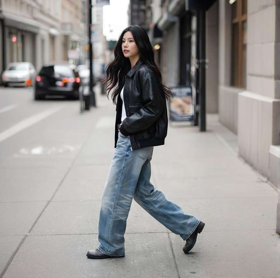 Pantalon en jean bleu clair délavé, streetwear tendance, pantalon large déchiré, jean ample de haute qualité pour femmes