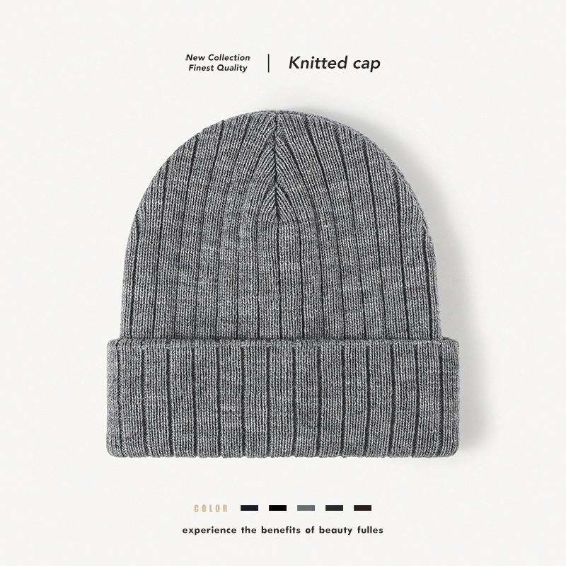 Bonnet en laine double couche épaissi à rayures audacieuses, couleur unie, bordure tricotée, style urbain simple et tendance