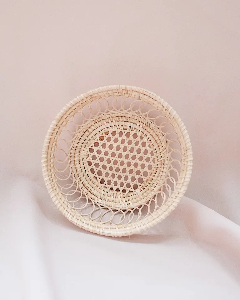 Bol de service en rotin fait à la main brun clair Design de forme ronde écologique pour une présentation élégante des aliments