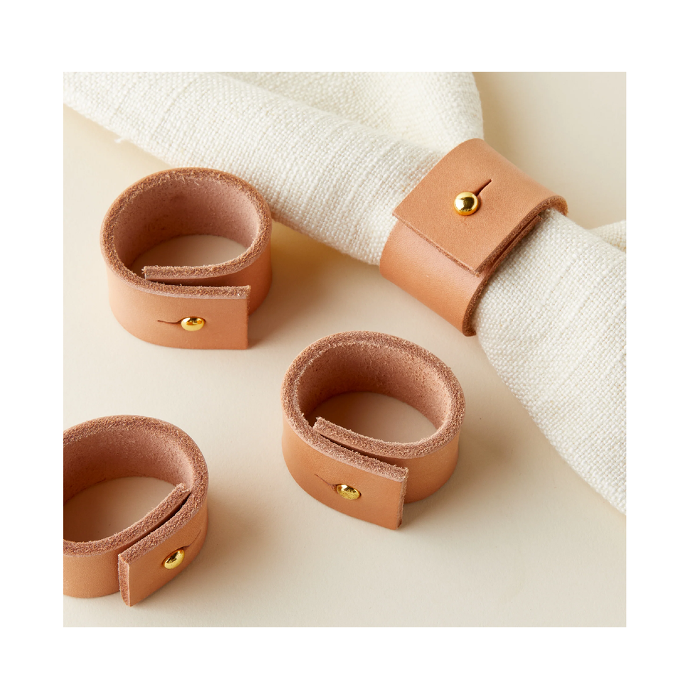 Anneaux de serviette élégants en cuir marron clair en gros pour 3 pièces taille personnalisée au meilleur prix