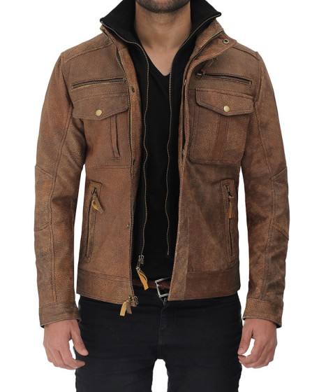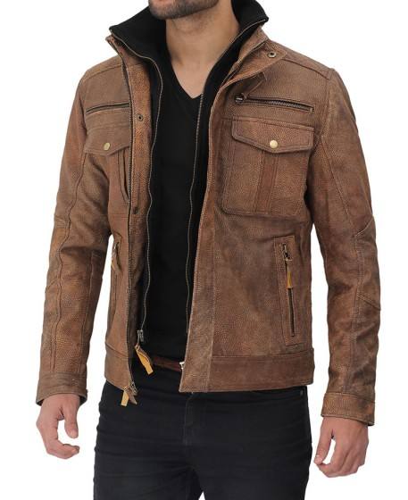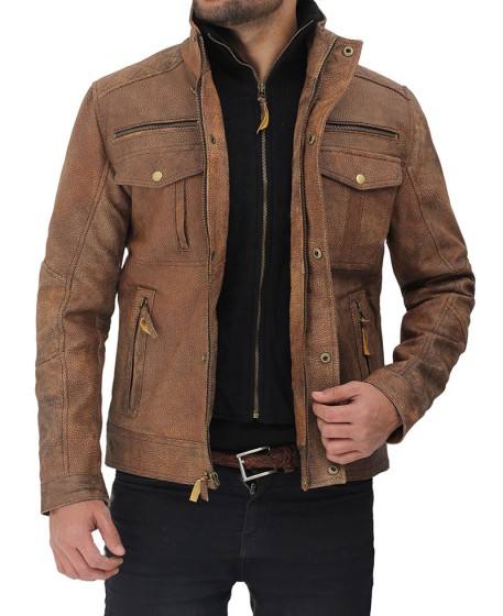 Veste en cuir pur marron clair à six poches de qualité supérieure pour hommes, hiver Maximize Wear