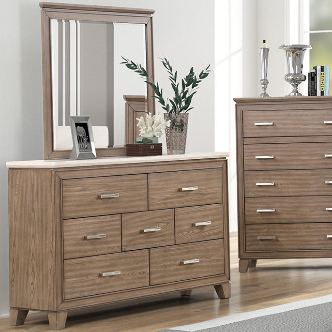 Ensemble de meubles de chambre à coucher avec commode et table de chevet assorties en bois brun clair aux lignes épurées