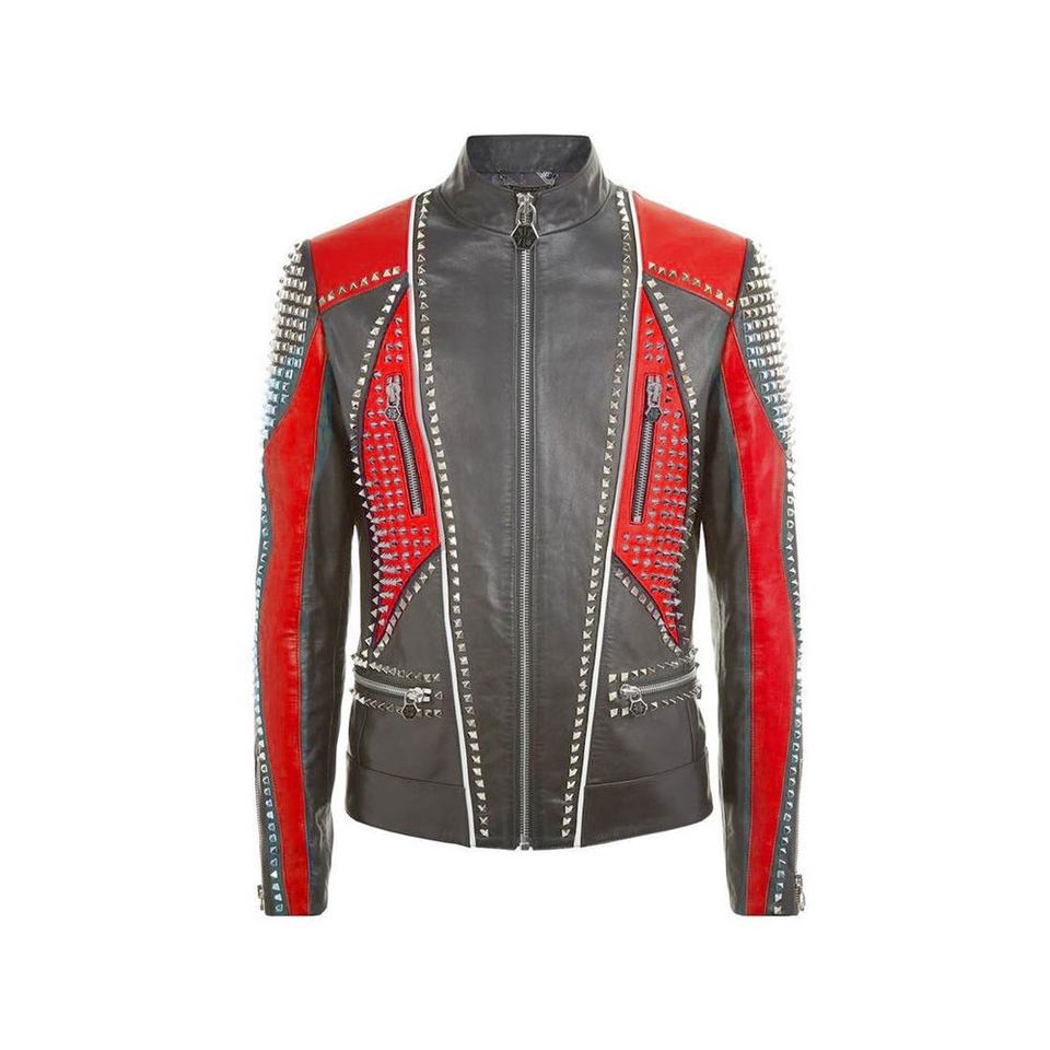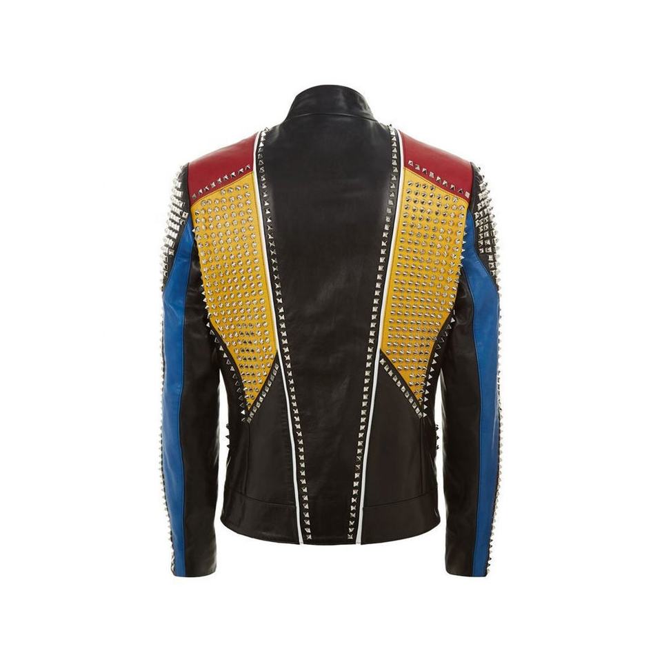Nom du produit:Blouson en cuir graffiti punk clouté