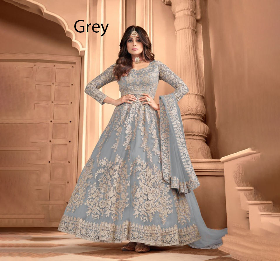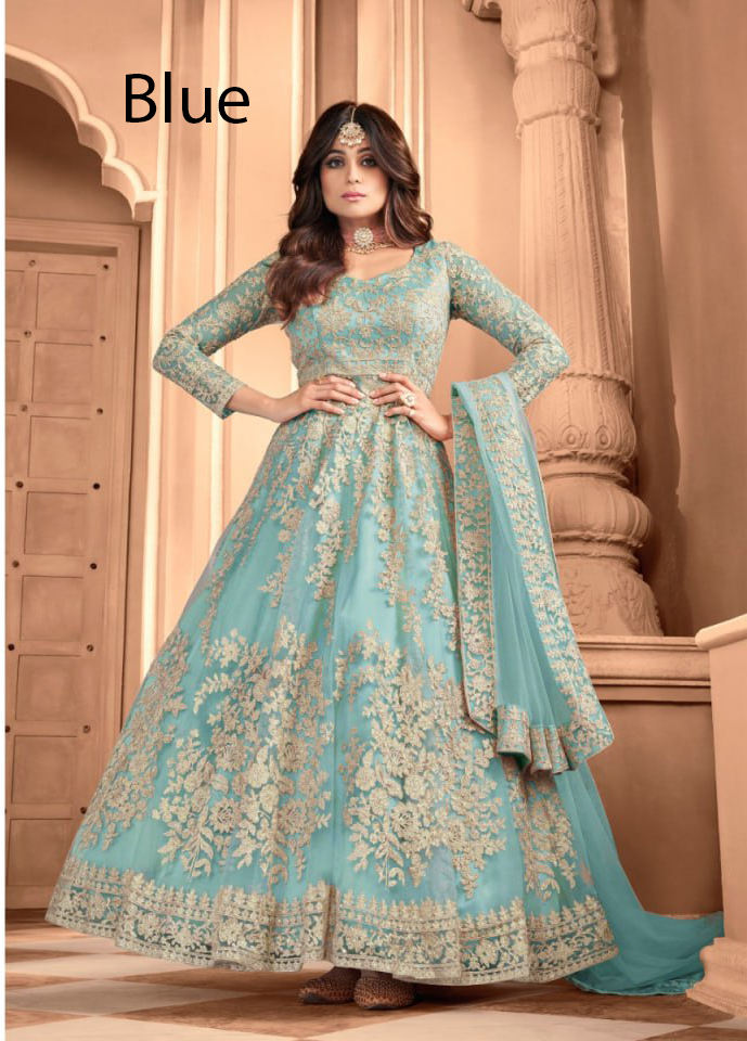 Vêtements indiens et pakistanais de couleur claire, broderie, travail au miroir, long salwar kameez, dentelle en faux georgette lourde, entièrement orné pour les fêtes