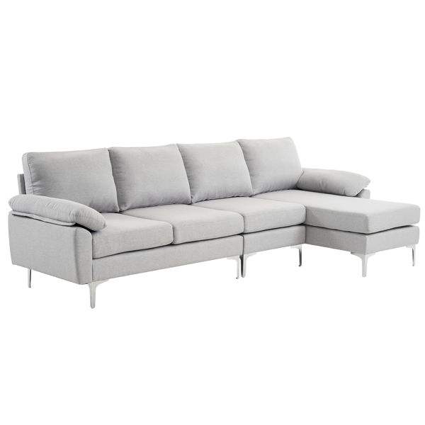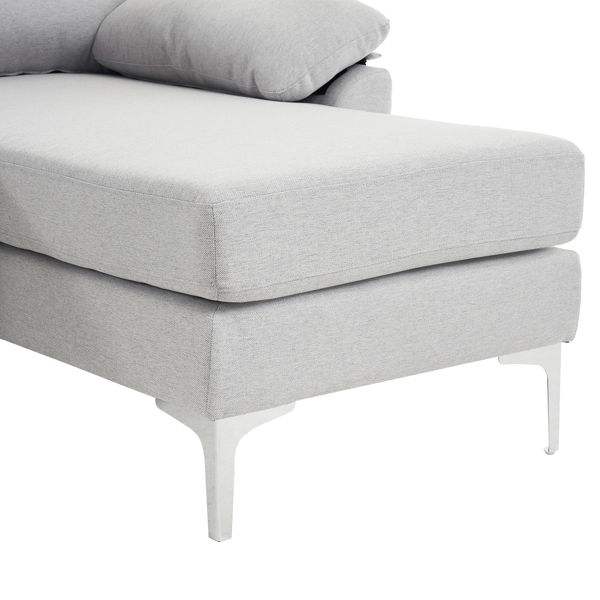 Canapé modulable d'intérieur gris clair 4 places 280*140*86cm en forme de L avec pieds en fer brillant Canapés de salon