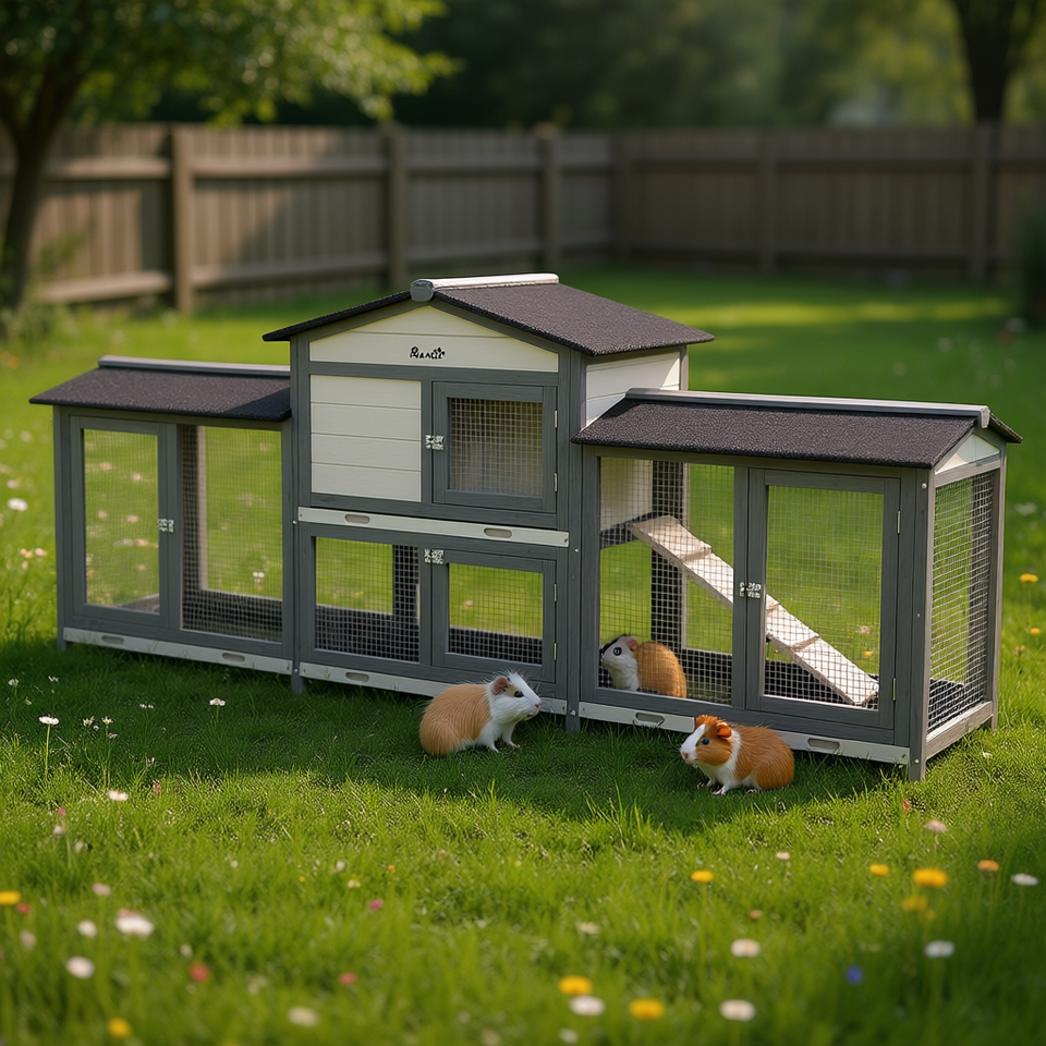 Cage à lapins en bois de 90,5 pouces avec enclos double face pour petits animaux, maison extérieure pour animaux de compagnie