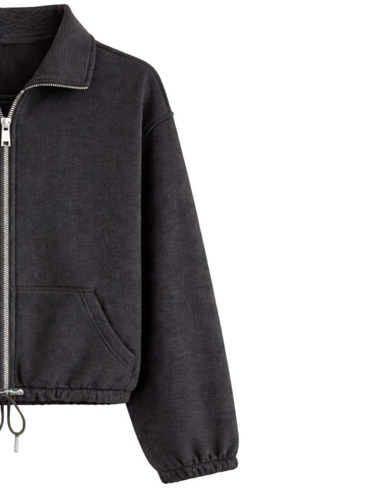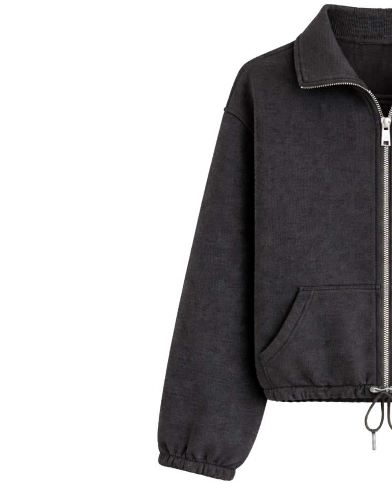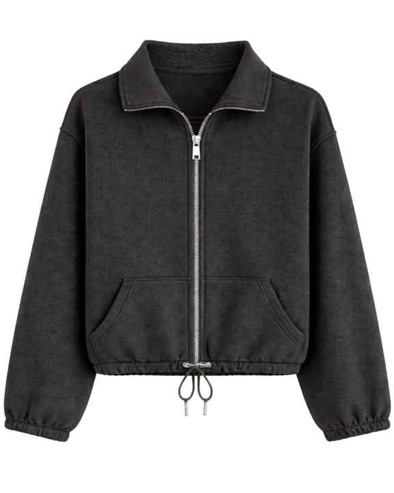 Sweat-shirt court zippé gris clair en polaire pour femme, col polo, poches avant, ourlet à cordon réglable, décontracté, chaud, style streetwear