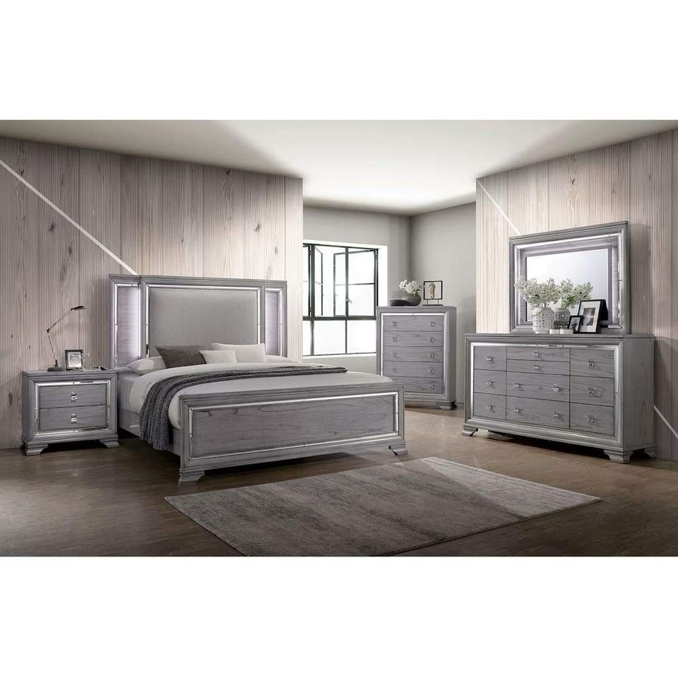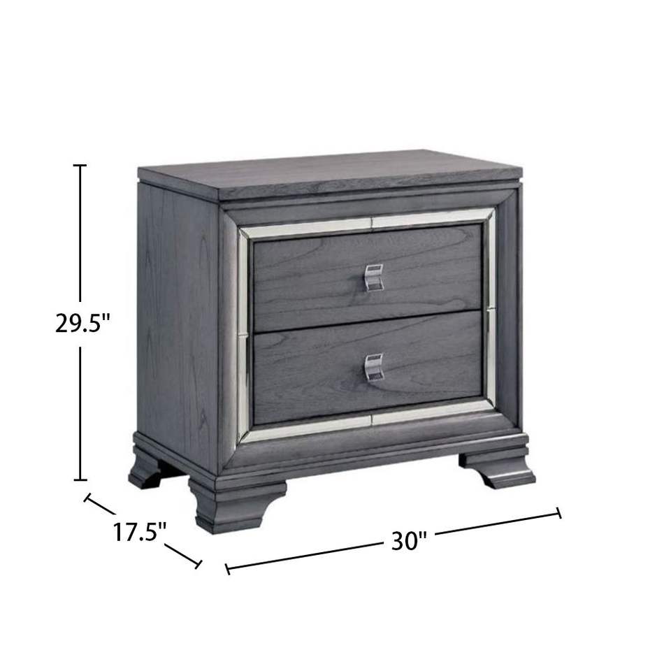 Table de chevet en bois de chêne gris clair avec 2 tiroirs et garniture de miroir pour chambre salon salle à manger ou hôtel