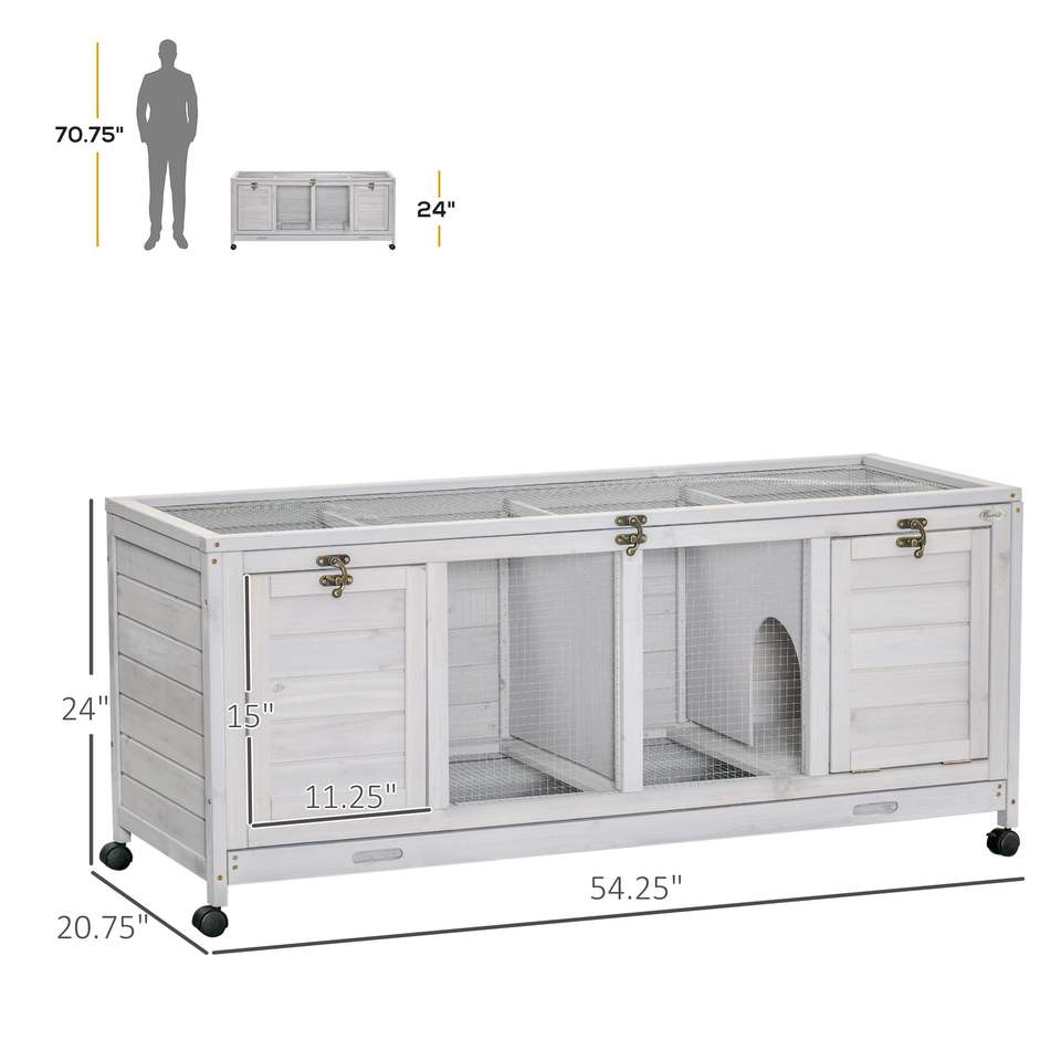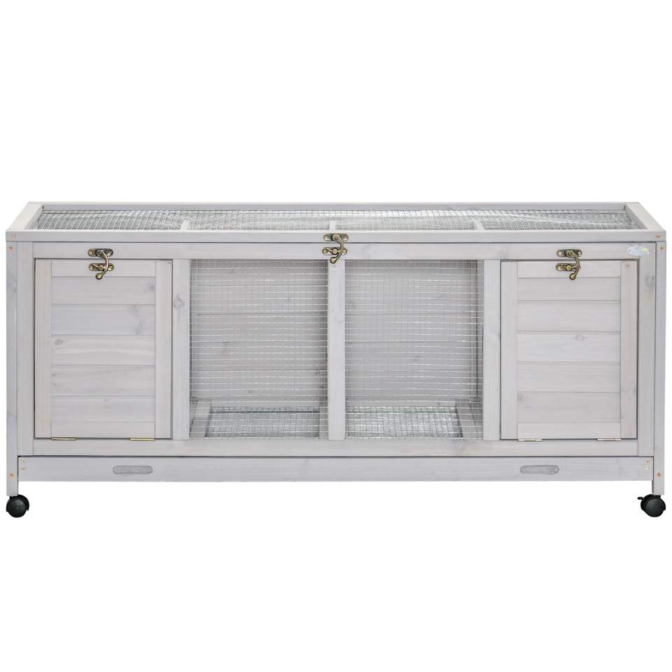 Cage à lapins en bois gris clair avec roulettes, meubles et abris pour animaux d'intérieur avec séparateurs