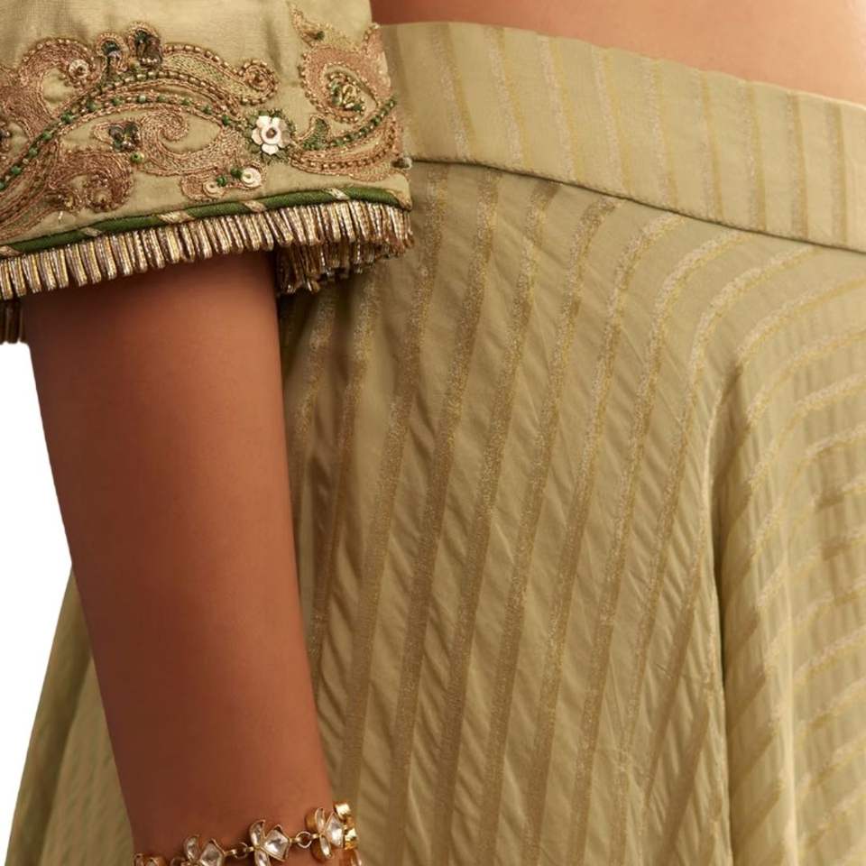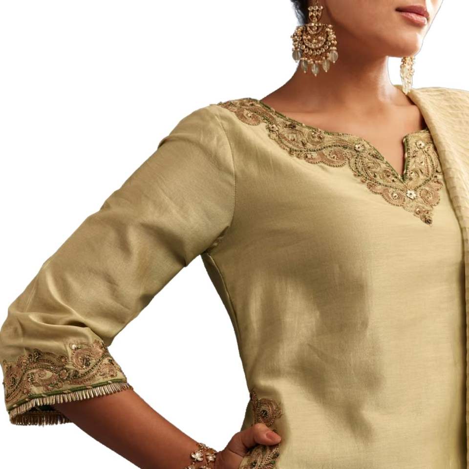 Vente en gros de vêtements ethniques pour femmes OEM fournisseur d'usine de vêtements Ensemble de palazzo Chanderi Kurta vert clair avec organza Dupatta
