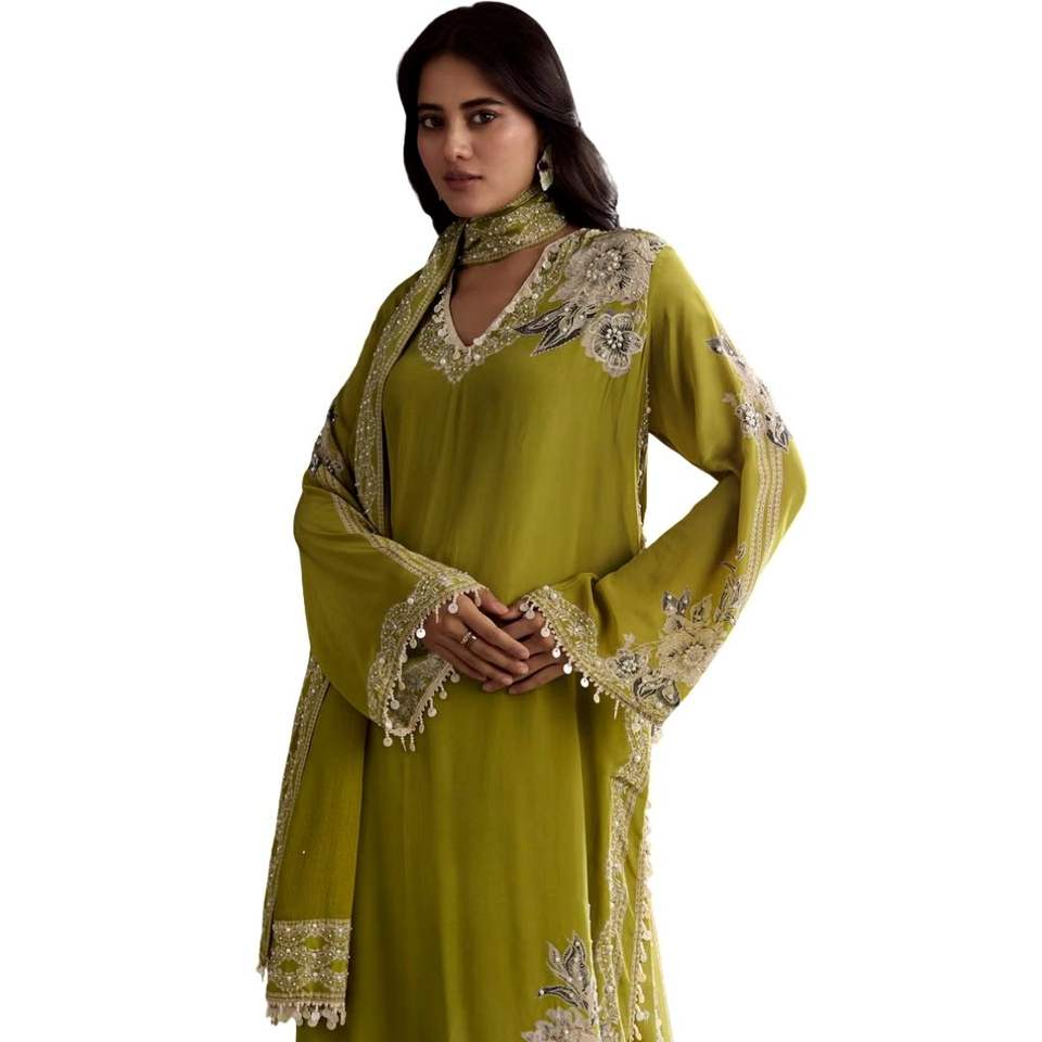 Kurta vert clair brodé avec motif Palazzo imprimé Vente en gros Vêtements ethniques pour femmes OEM Fournisseur d'usine de vêtements Costume personnalisé