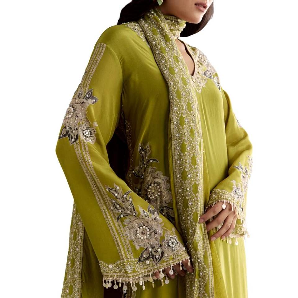 Kurta vert clair brodé avec motif Palazzo imprimé Vente en gros Vêtements ethniques pour femmes OEM Fournisseur d'usine de vêtements Costume personnalisé
