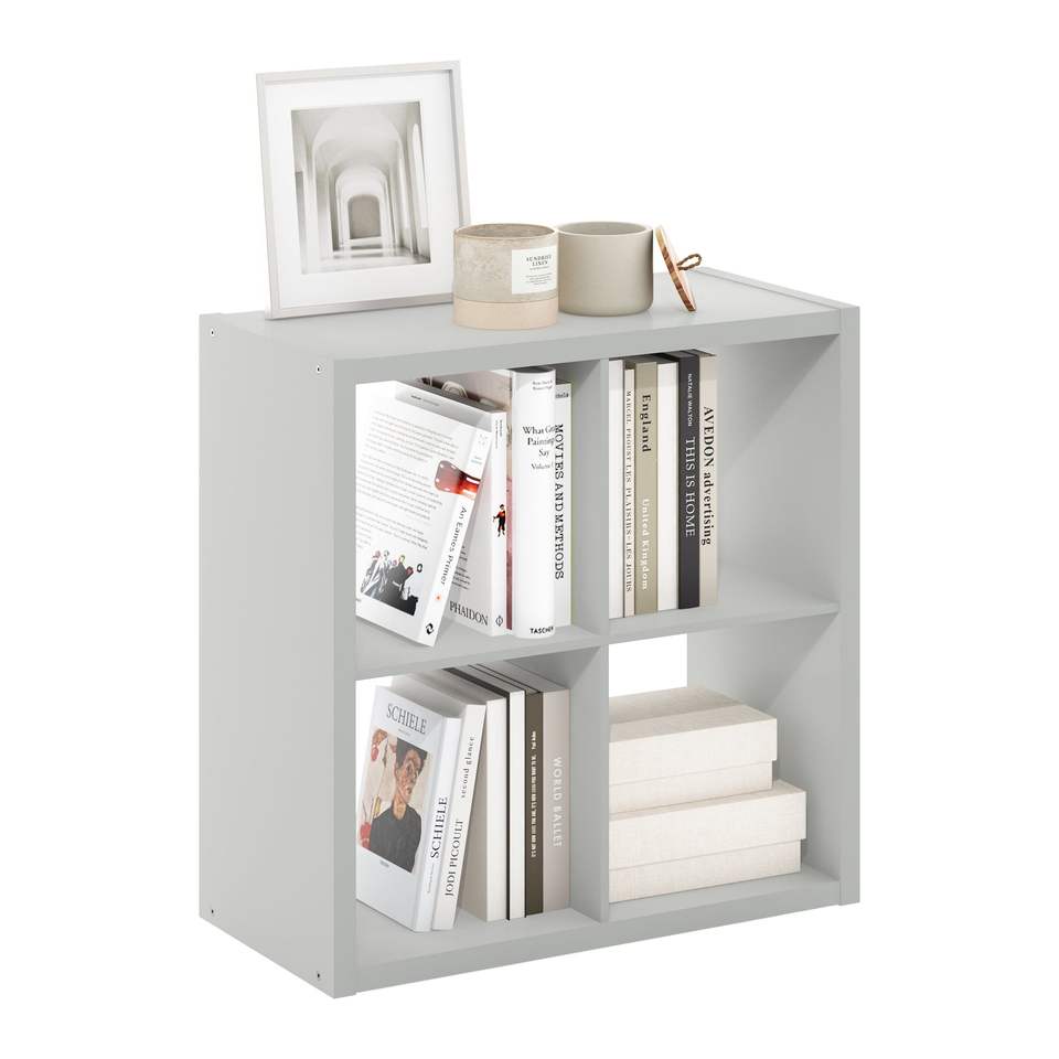 Organiseur décoratif à 4 cubes gris clair avec dos ouvert, bacs de rangement pour cubicles