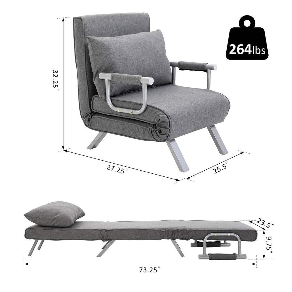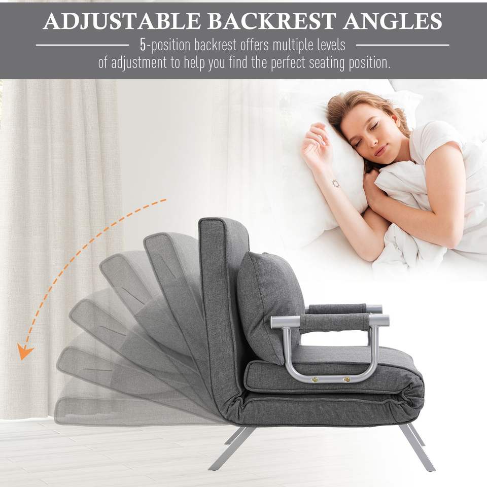 Canapé-lit convertible gris clair, 5 positions, avec structure en acier
