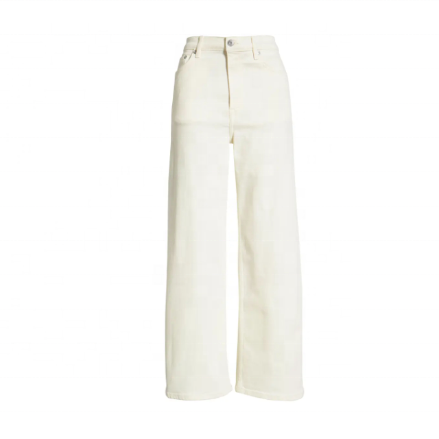 Jeans à jambes larges en coton, délavé léger, couleur ivoire, 100 coton, disponible en Stock, prix en gros