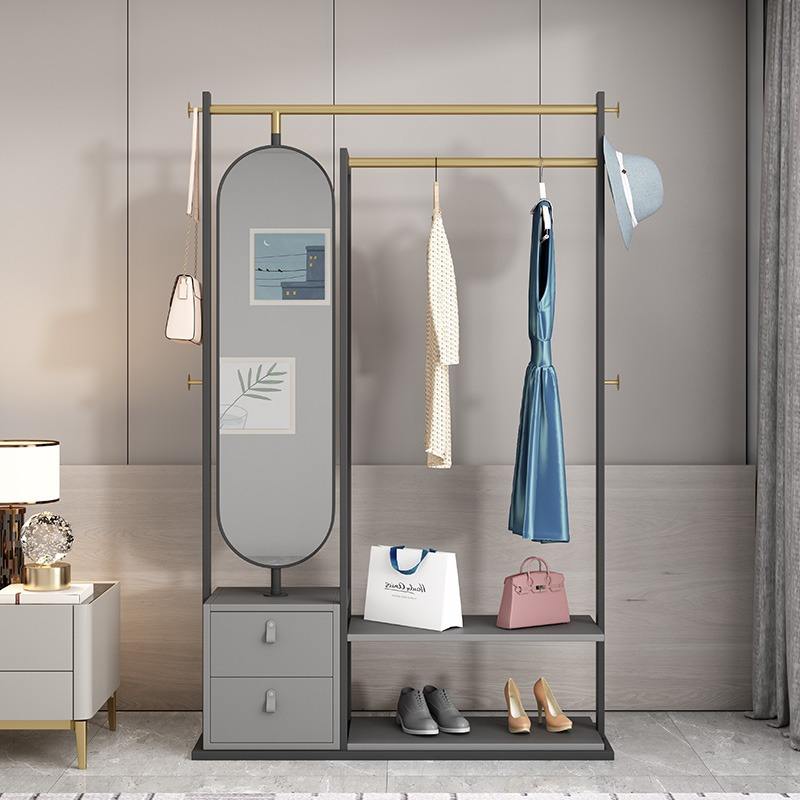 Porte-manteau en bambou de luxe léger, sur pied, chambre à coucher, moderne, simple, miroir de toilette intégré, porte-vêtements multifonctionnel