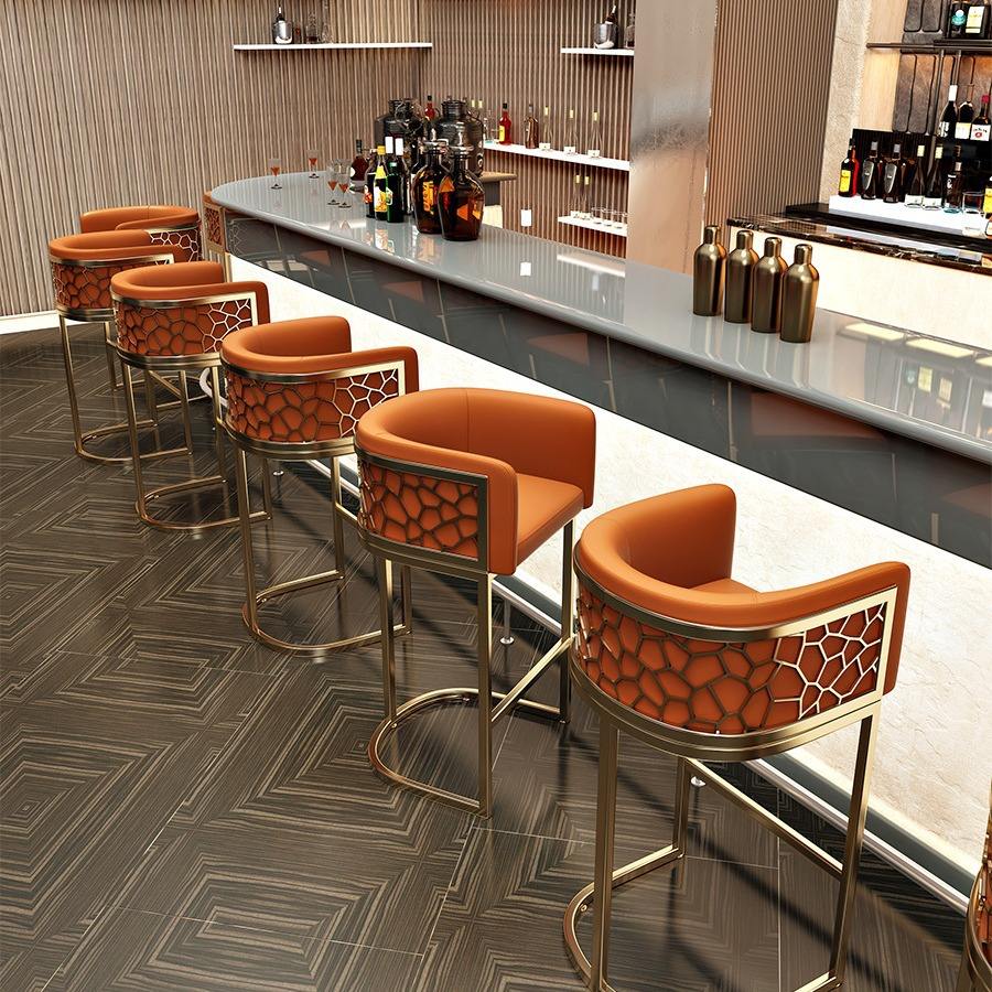 Tabouret de bar haut de gamme commercial au design floral créatif avec dossier incurvé et dossier en filet