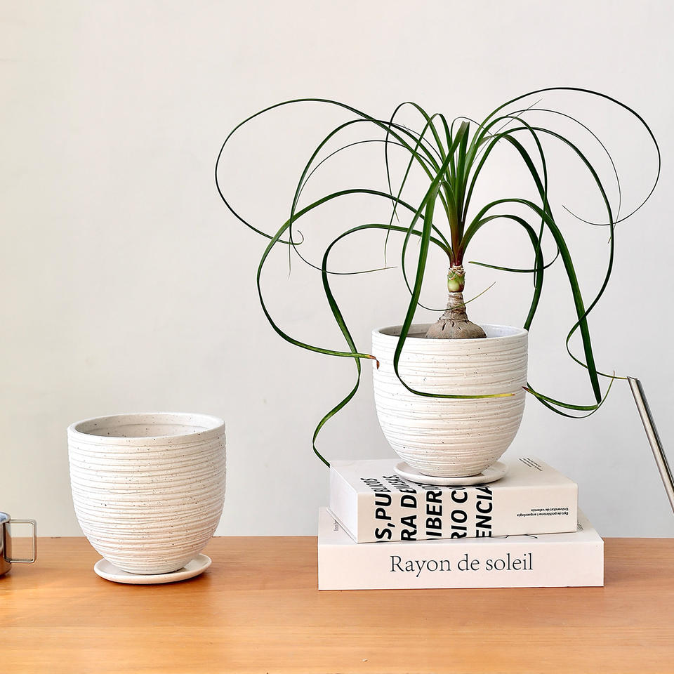 SélectionnerCouleur: Coarse sand scraping line white flower pot-with tray