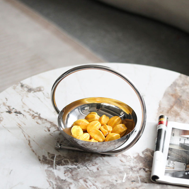 Bol à fruits en acier inoxydable argenté haut de gamme, écologique, personnalisé, ZEHRA INDUSTRIES, avec poignée en métal, plateau à fruits secs simple